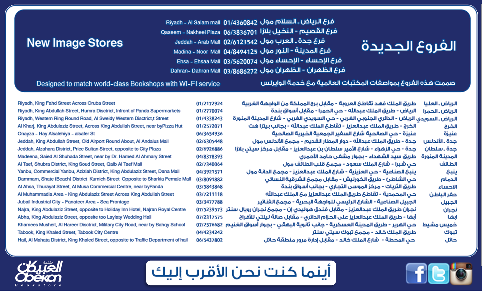 Uzivatel مكتبة العبيكان Na Twitteru عناوين وأرقام هواتف فروع مكتبة العبيكان في المملكة Http T Co 1off5drn
