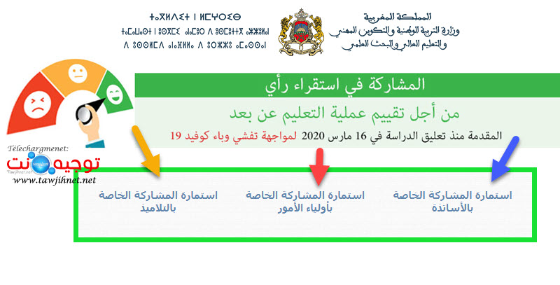 استمارة تقييم عملية التعليم عن بعد التلاميذ أولياء الأمور الأساتذة منتديات توجيه نت