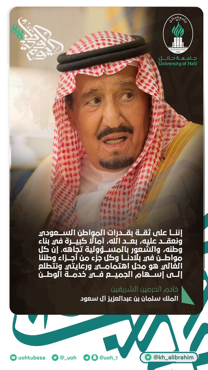 خليل البراهيم Twitterissa من أقوال خادم الحرمين الشريفين الملك سلمان بن عبدالعزيز يحفظه الله اليوم الوطني88 جامعة حائل