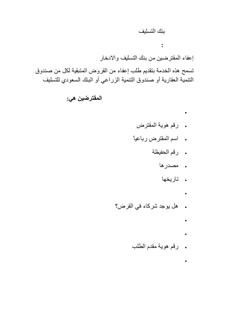 نموذج طلب اعفاء من بنك التسليف برقم الهوية 1441 موقع محتويات