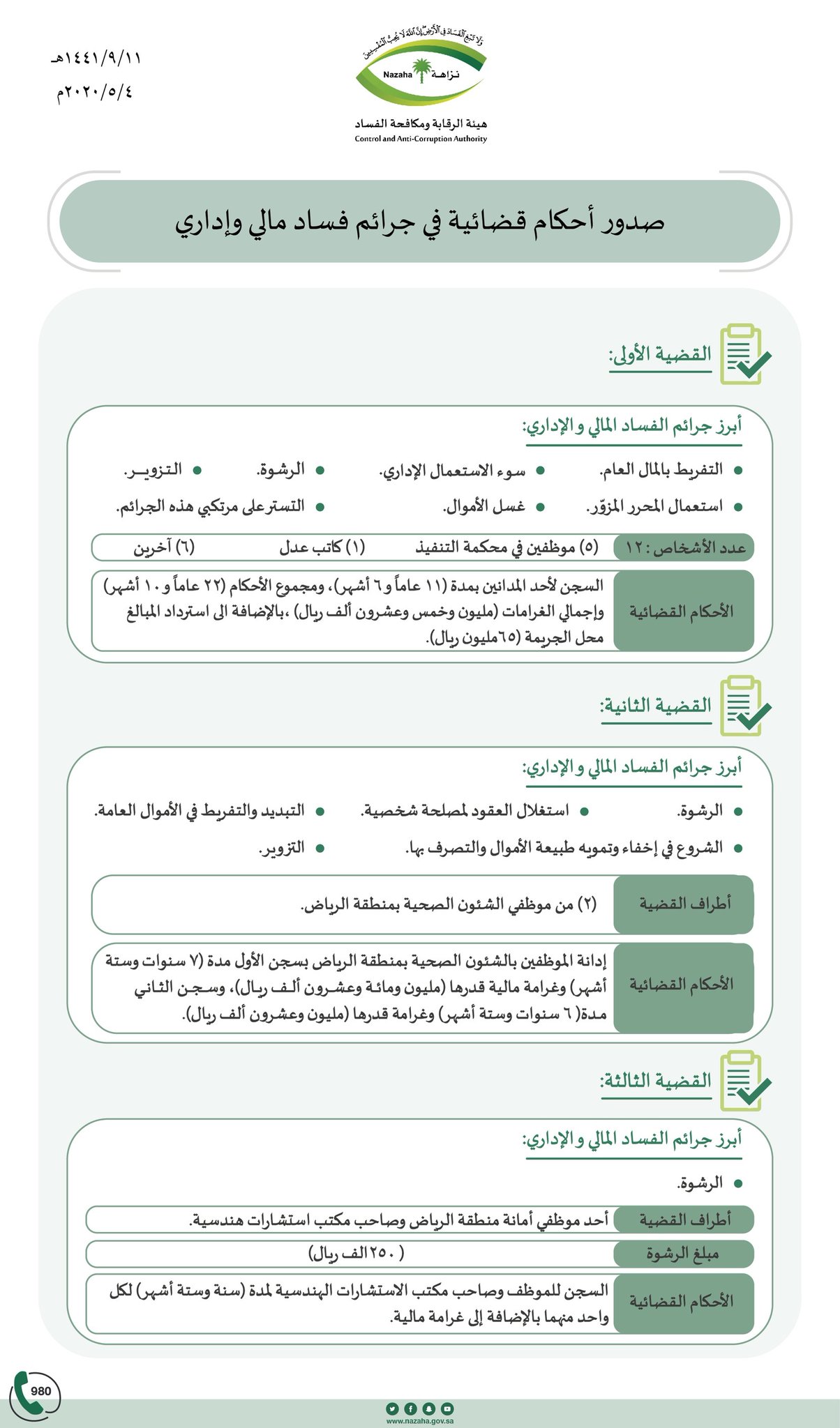 هيئة الرقابة ومكافحة الفساد On Twitter صدور أحكام قضائية في جرائم فساد مالي وإداري هيئة الرقابة ومكافحة الفساد معا لمكافحة الفساد Https T Co 3jcdh4dlrr Https T Co Xbgnrkuoln