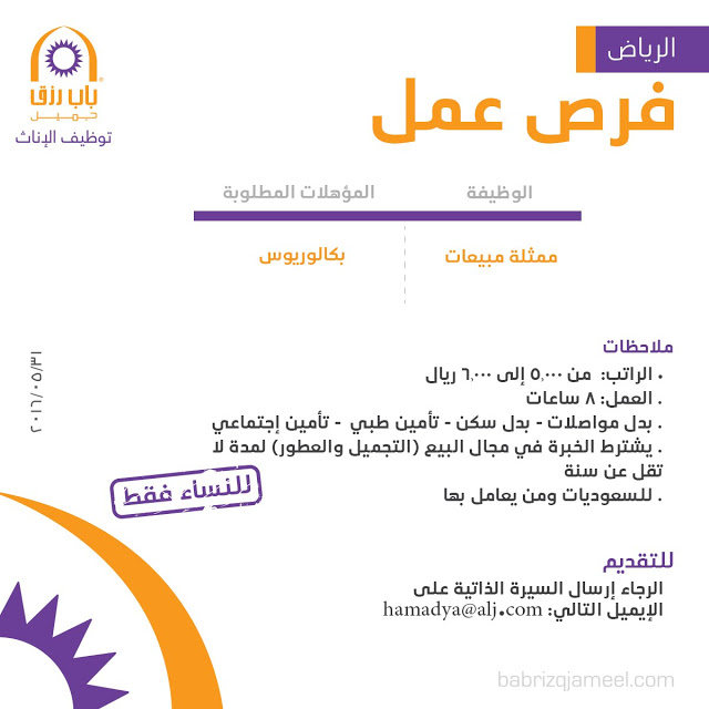 باب رزق جميل Bab Rizq Jameel On Twitter وظائف للسيدات في الرياض أخصائية توظيف توظيف توظيف الإناث ة باب رزق جميل Https T Co M3yobuu4zz